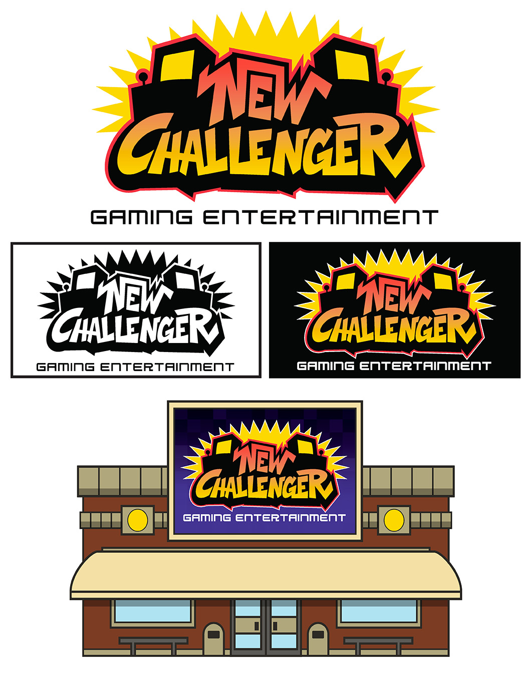 New Challenger is a fictional arcade and gaming entertainment establishment. The objective was to invent a business with an original concept. Because one of my inspirations is video games, I wanted to create a retro arcade scene with private lobbies where people (young and old) can recapture the joy of playing video games on arcade cabinets. The title “New Challenger” gives the people the idea to reignite their competitive edge in gaming. The logo drawn by hand including the lettering and later translated as a vector illustration. The dynamic logo is designed to have multiple versions such as monochromatic, black and white, and full color.