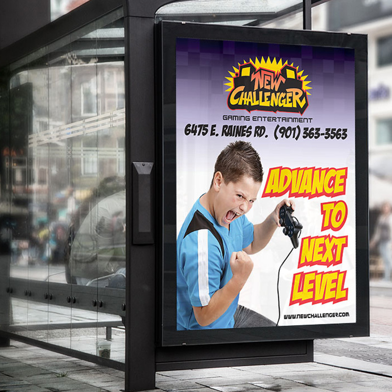 To spread the word of New Challenger to all gamers of all generations, the business is promoted in different ways. Business cards, billboards, posters, flyers, websites, and reward apps are implemented to catch the attention of any and all who are interested in New Challenger.