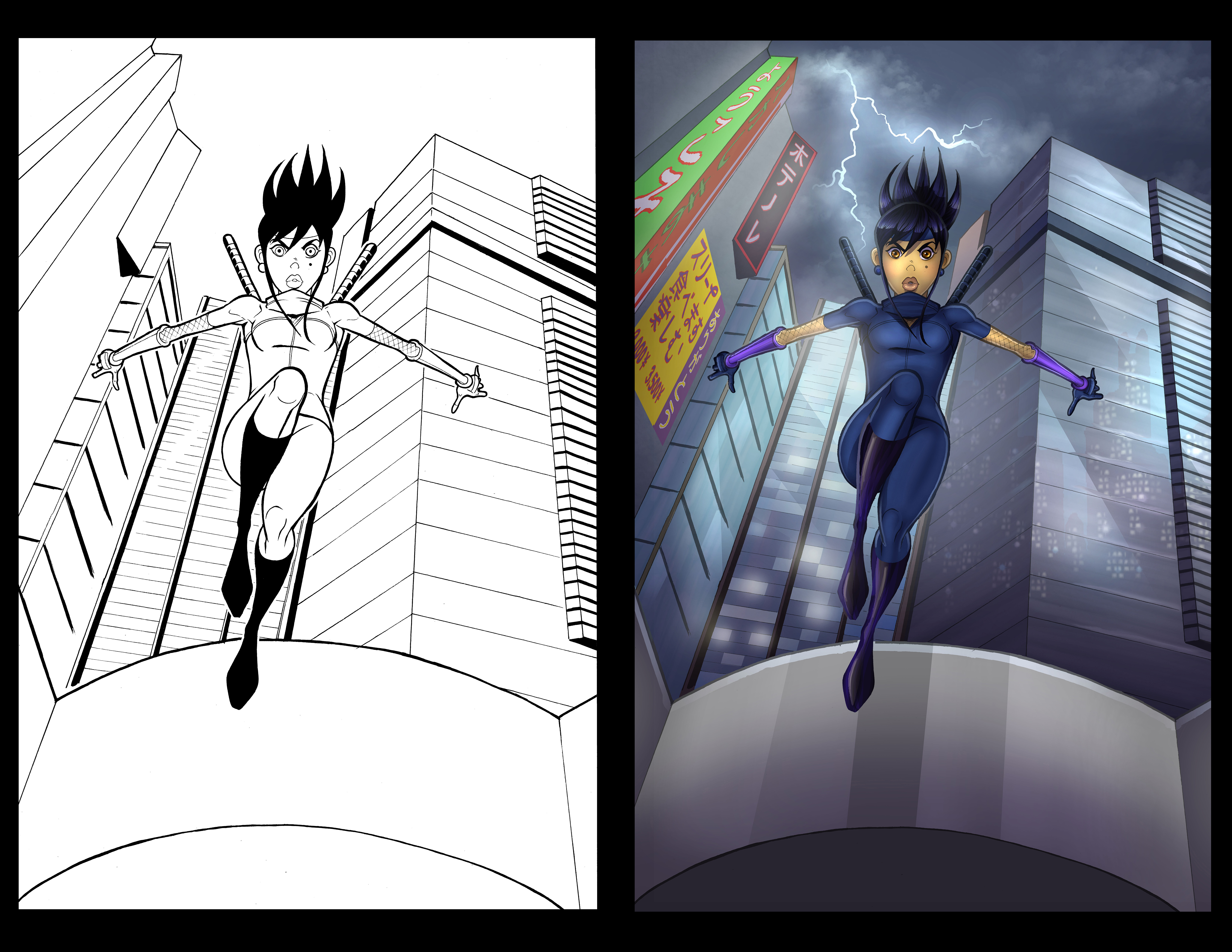 Shinobi - Ninja Princess is a published comic book series created by Martheus Wade, an illustrator and graphic designer. I had the fortunate chance to contribute to his project as the page colorist. Shinobi - Ninja Princess is the coming-of-age story of a young ninja girl, Shianndrea, as she encounters the challenges of everday teenage life while learning to control her newfound powers. It’s a great adventure story that readers of all ages can enjoy. If you are interested in learning more about Shinobi – Ninja Princess or where to find a copy of the comic book series, you can visit toshigawauniverse.com.